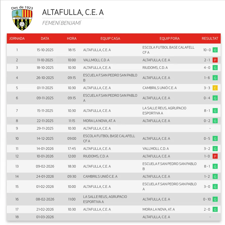 Les Benjamines del CE Altafulla guanyen el primer títol femení de la nostra història.
